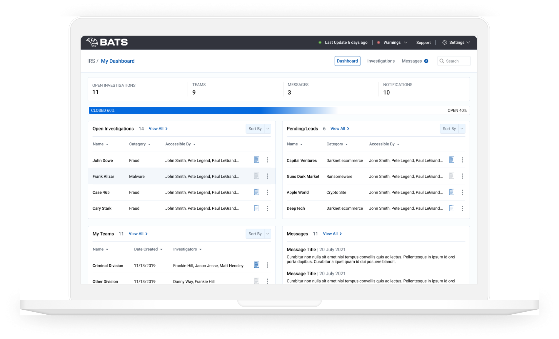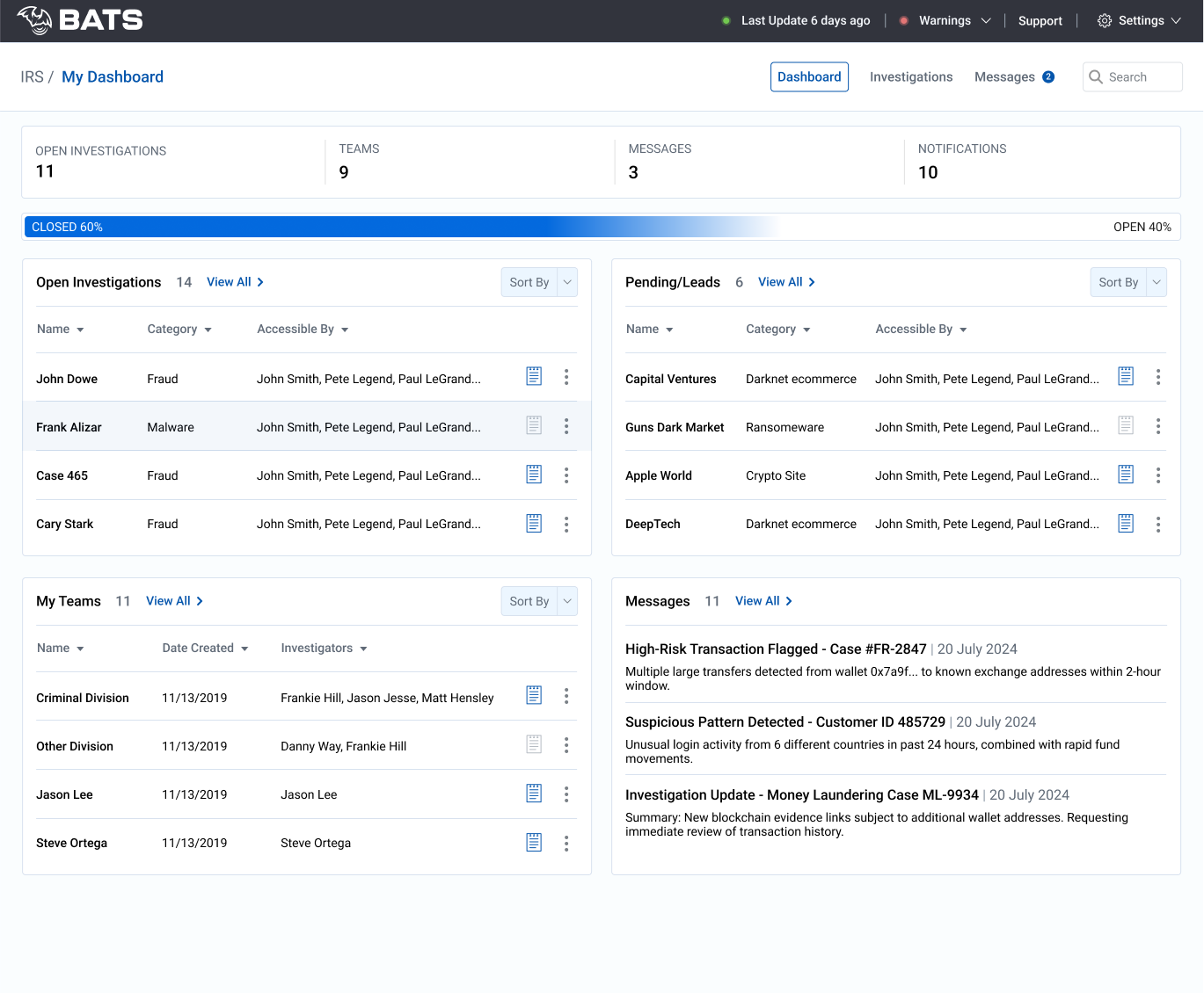 When I joined BATs, the platform already contained a lot of data: dashboards, transaction details, addresses, users, and case files. But what it didn’t have was structure. Investigators from agencies like the IRS told us they struggled to follow even simple workflows.