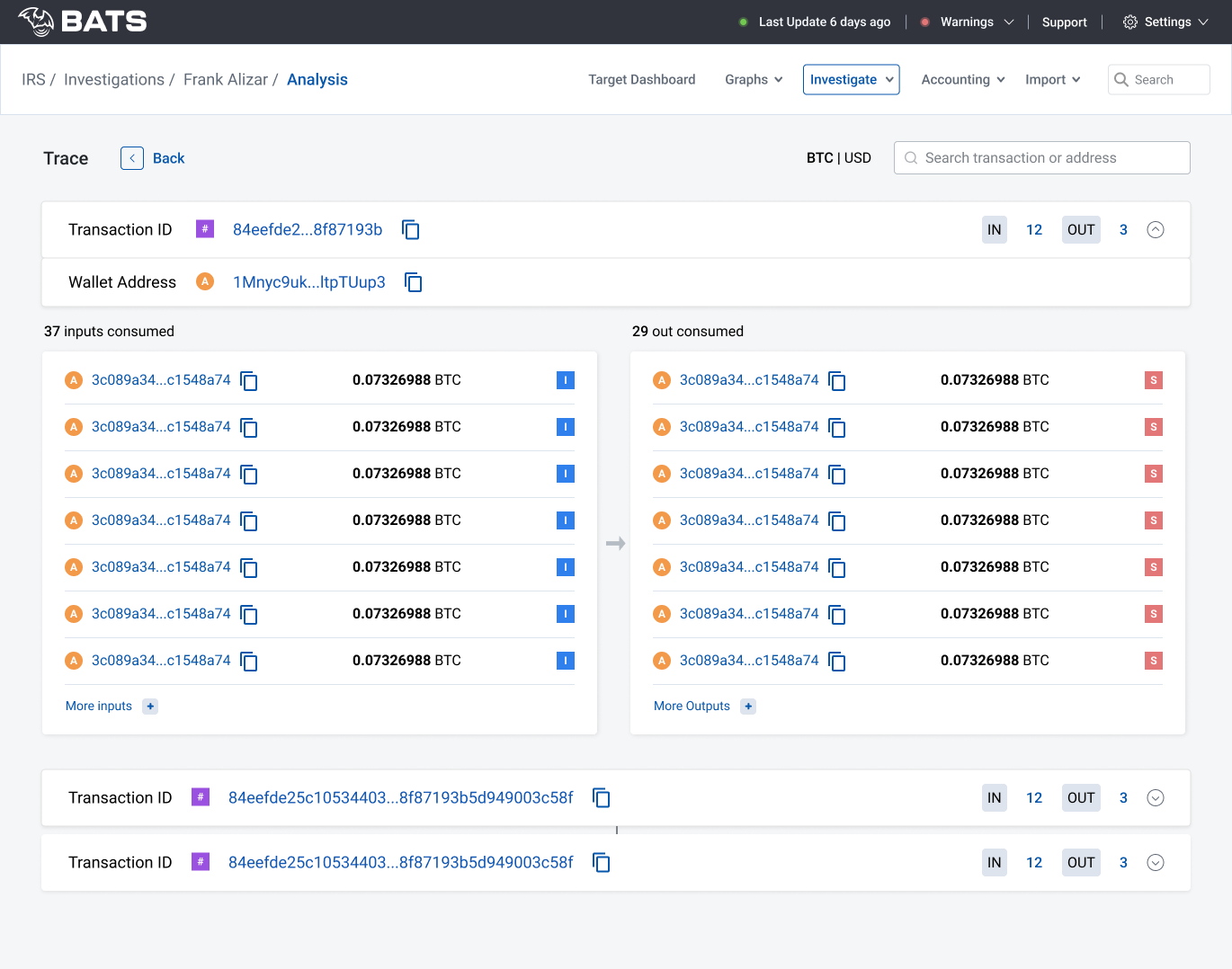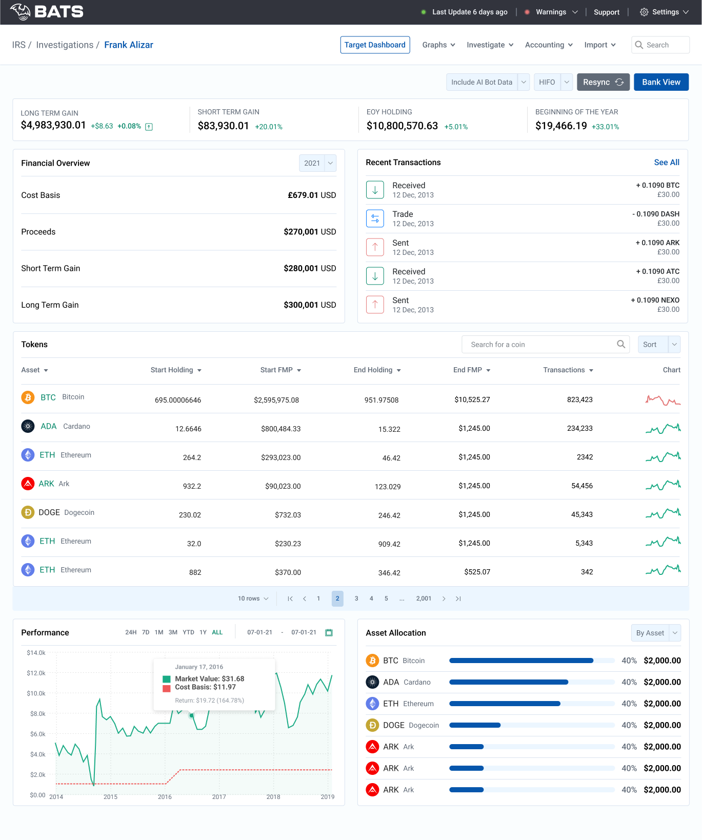 BATs is a blockchain investigation platform used by law enforcement and the IRS to trace complex crypto transactions. It aggregates data from wallets, exchanges, and subpoenas, helping investigators detect fraud, follow financial flows, and build stronger cases.