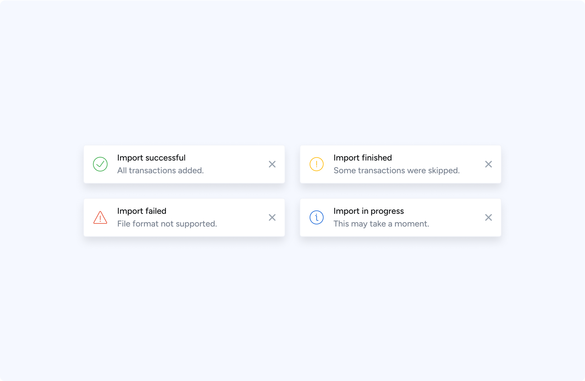 Adding a progress stepper: Introducing a progress stepper would guide users from their first import through to downloading tax documents. It would make the process clearer, reduce uncertainty, and give users confidence that they’ve completed all steps correctly.
